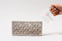 To highlight the visual effects created by the interaction between ceramic and water, varying thicknesses are applied to the surface. These differences in thickness affect the material’s ability to absorb water. The contrast in the pattern emerges as the ceramic absorbs water, with thicker areas taking longer to soak. The pattern continuously evolves until the water fully permeates all the pores in the ceramic.